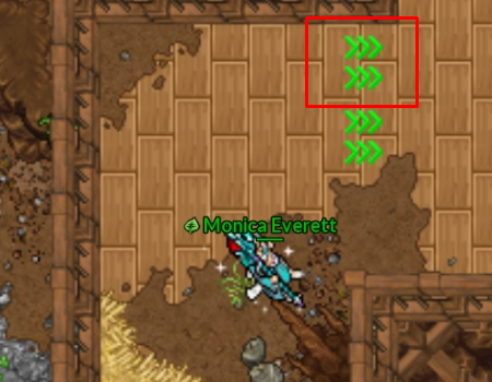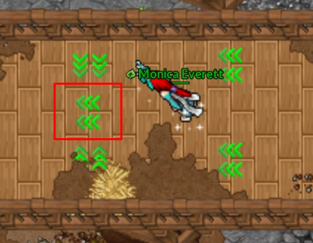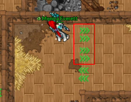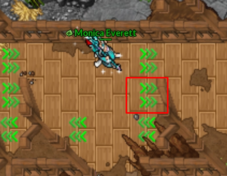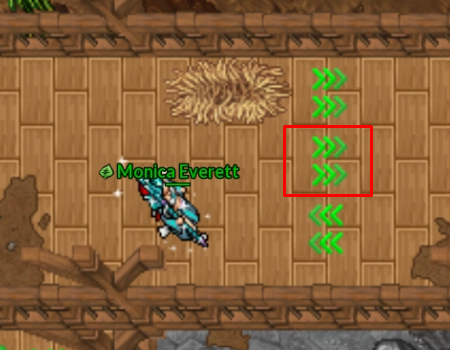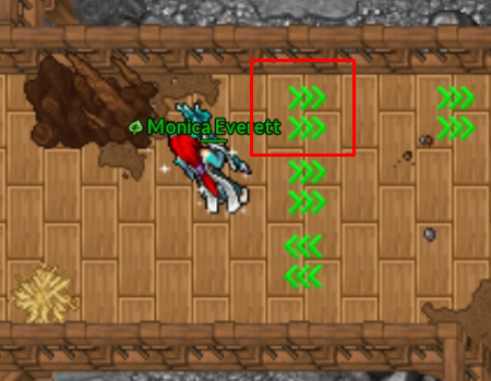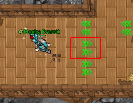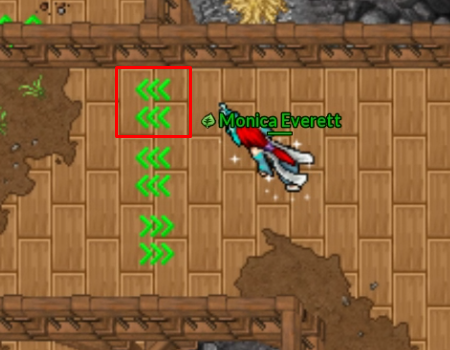 Ao ativar uma seta, o personagem é impulsionado automaticamente na direção indicada, sem qualquer possibilidade de controle durante o movimento.